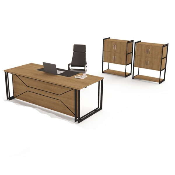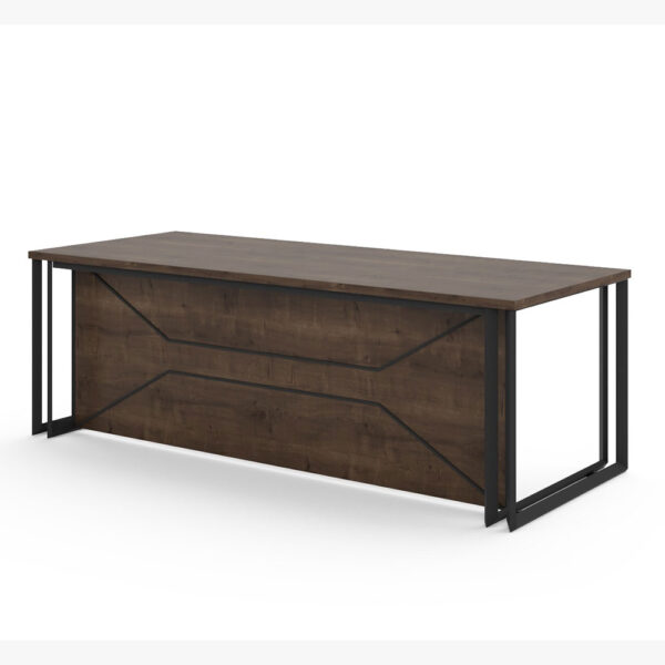 שולחן מנהלים מעוצב פלטה מלמין עץ אלון משולב פסים רגל מתכת שחורה