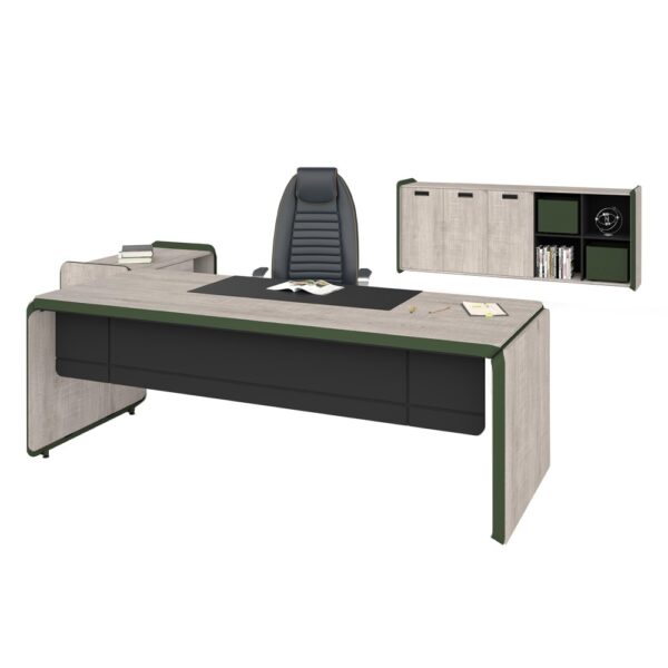 שולחן משרד עבודה מעוצב כולל קושרת, פלטה מלמין, רגלי מתכת
